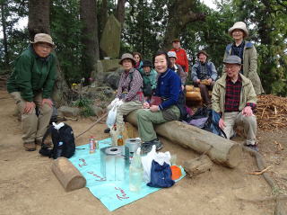 | 弘法山公園入口から秦野駅までは車道歩きですが一部は水無川の河川敷の遊歩道を歩きました。花を見ながら歩くことが出来車道を歩くよりはるかに快適でした。 このホームページは本日中に閉鎖になりますので最後のアップになるのでメンバーの顔が分かる写真も入れることにしました。数時間だけの公開ということになりますのでお許し頂きたいと思います。 |