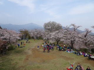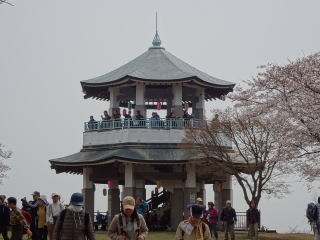 | 展望台から見る桜。遠くに見えるのは大山。 |