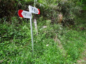 | 雨降山近道の道標。だいぶ疲れていたので雨降山を敬遠し和見分岐へ。 |
