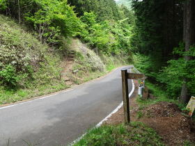 | 和見分岐。ここで休んでいると自転車に乗った人が権現山の方から来ました。この日山道で会ったのはこの人一人だけでした。 |