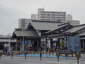| 高尾駅。以前はバスの通るところを歩けましたが、今は横断歩道の部分しか歩けません。 |