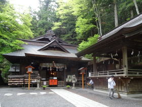 | 護国神社。ここから河口湖駅までは車道歩きでした。 |