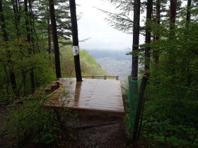 | 霜山への上りは急でロープの張ってあるところが多く辛い登りでしたが良い脚の鍛錬になったようです。なるべくロープを頼らないで登りましたが、下りではロープを頼らなければならないような急斜面でした。これに対して河口湖と三つ峠を結ぶ道はよく整備され傾斜もゆるくすいすいと歩けルートによる歩きの違いを実感しました。 |